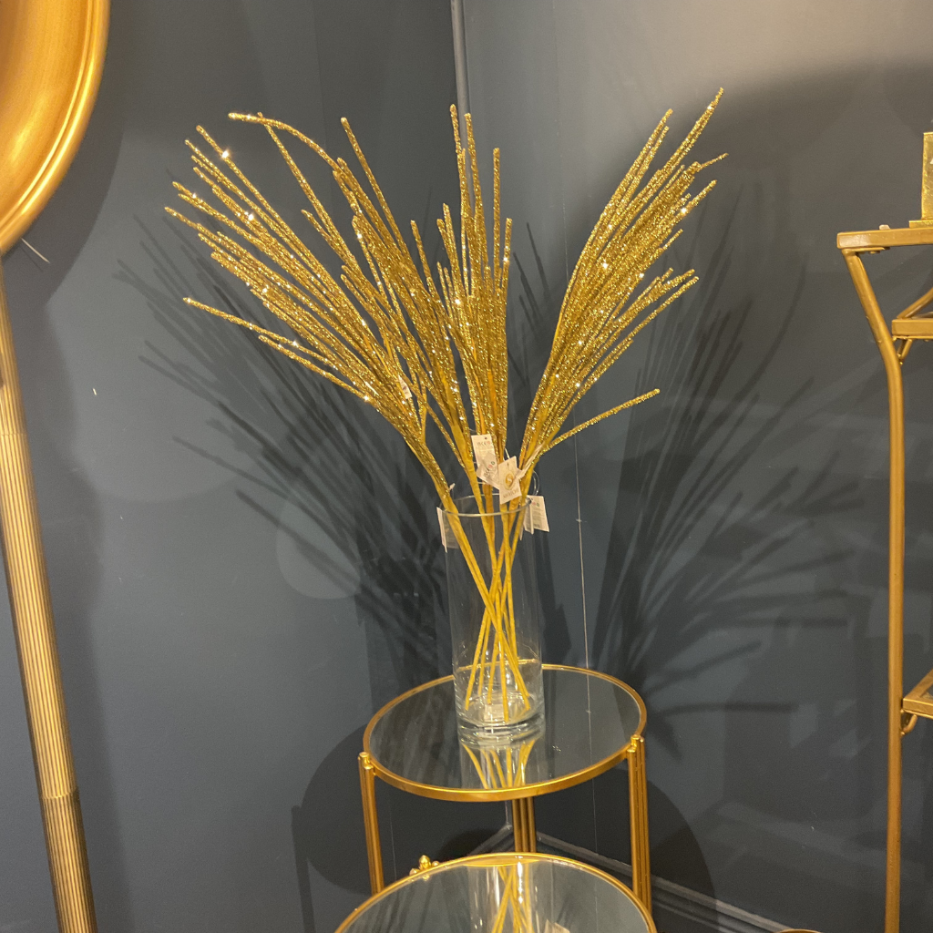 This 61 cm Beaded Firework Spray in gold offers a striking, refined accent for elegant floral arrangements or decor displays. Its intricate beaded design captures light beautifully, adding a subtle shimmer and dynamic texture that enhances any setting with understated luxury.