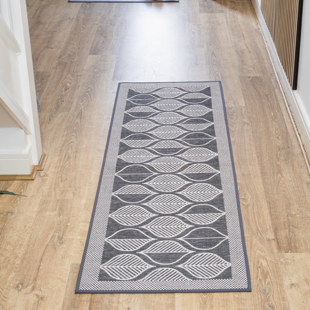 Elevate your home with the Expression Runner – Leaves, featuring a refined woven linen appearance and delicate leaf patterns. Measuring 50x150cm, its slim profile fits effortlessly under low doors, while soft grey hues complement diverse interiors. Designed for entrances, kitchens, and offices, it adds subtle warmth and sophistication. The durable, wrinkle-resistant fabric lays flat after washing, ensuring lasting elegance. A slip-resistant rubber backing offers stability across floor types, combining safety with style.
