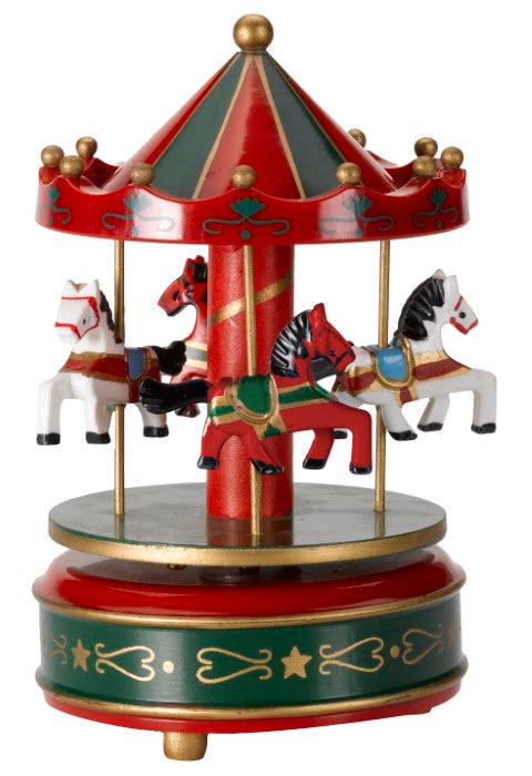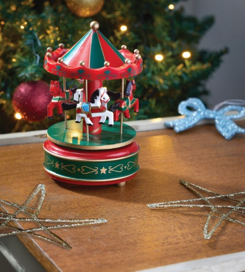 Dance to the beat of your own tune with this Musical Carousel Christmas decoration. The playful hand painted carousel's design and musical feature create a fun and charming addition to any room. So why wait? The best part -no batteries required, this stunning carousel is wind up operated!