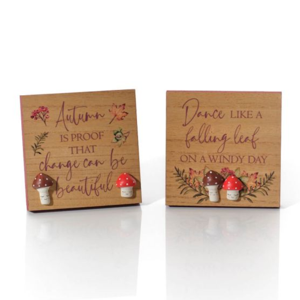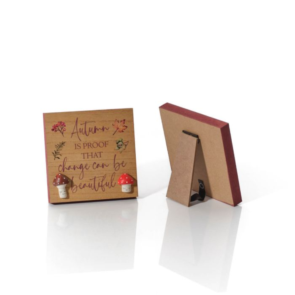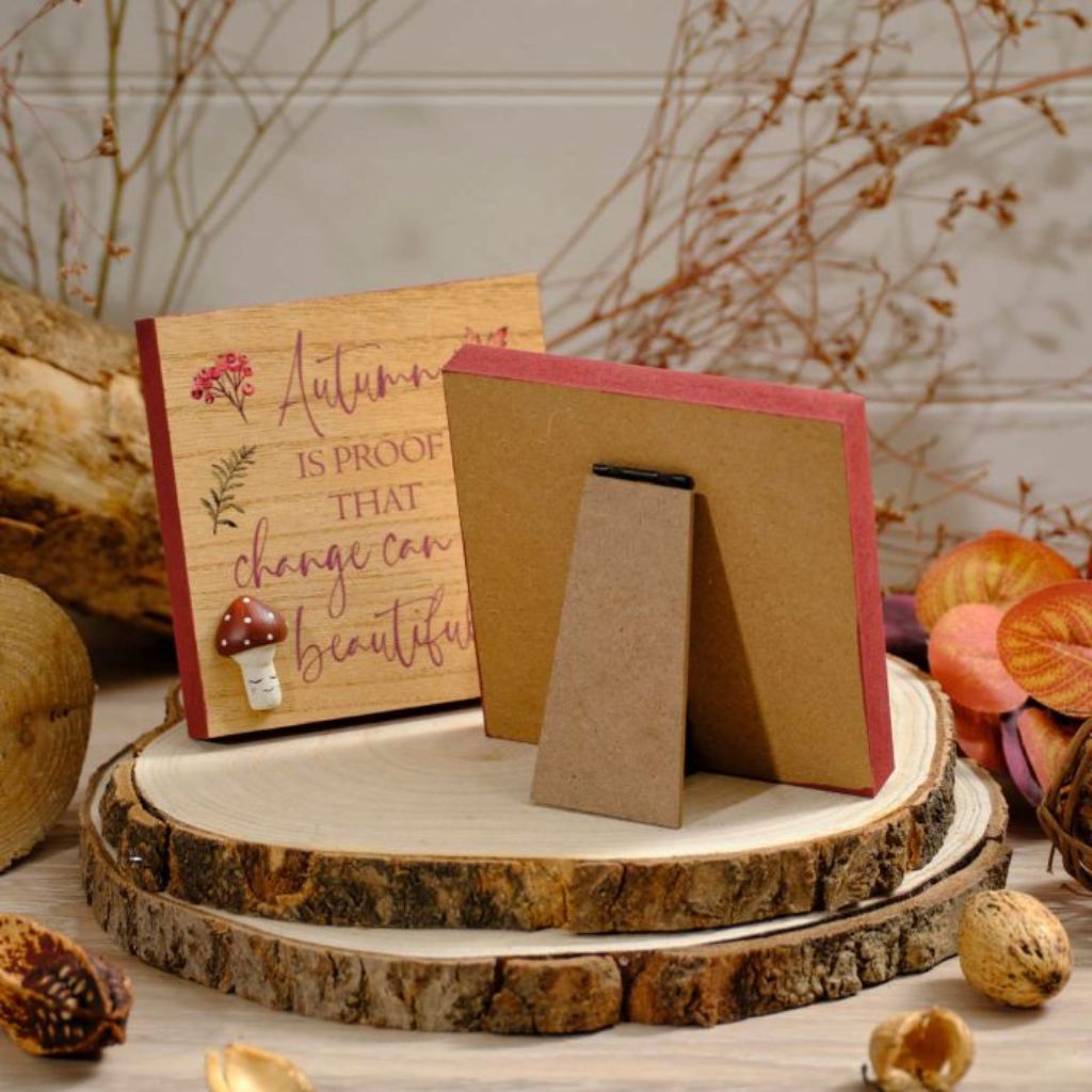 Bring the warmth of autumn indoors with this Toadstool Wood Easel Plaque, featuring detailed 3D mushrooms and two assorted designs, each with a unique seasonal message. Sized at 12x12x2.5cm, it’s perfect for adding a cosy, woodland charm to your autumn décor or gifting to loved ones.