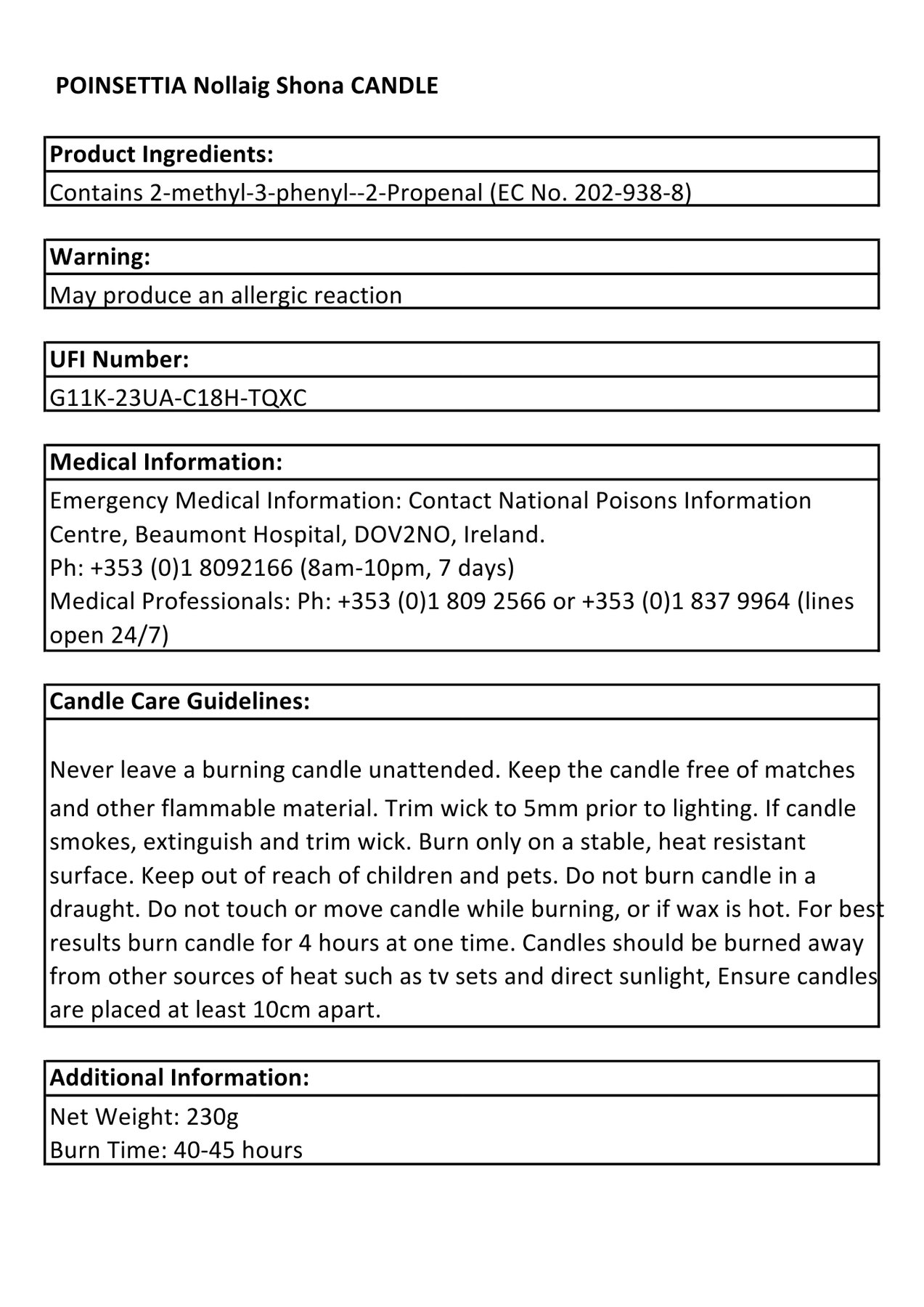 · For best results burn the candle for 4 hours at one time.