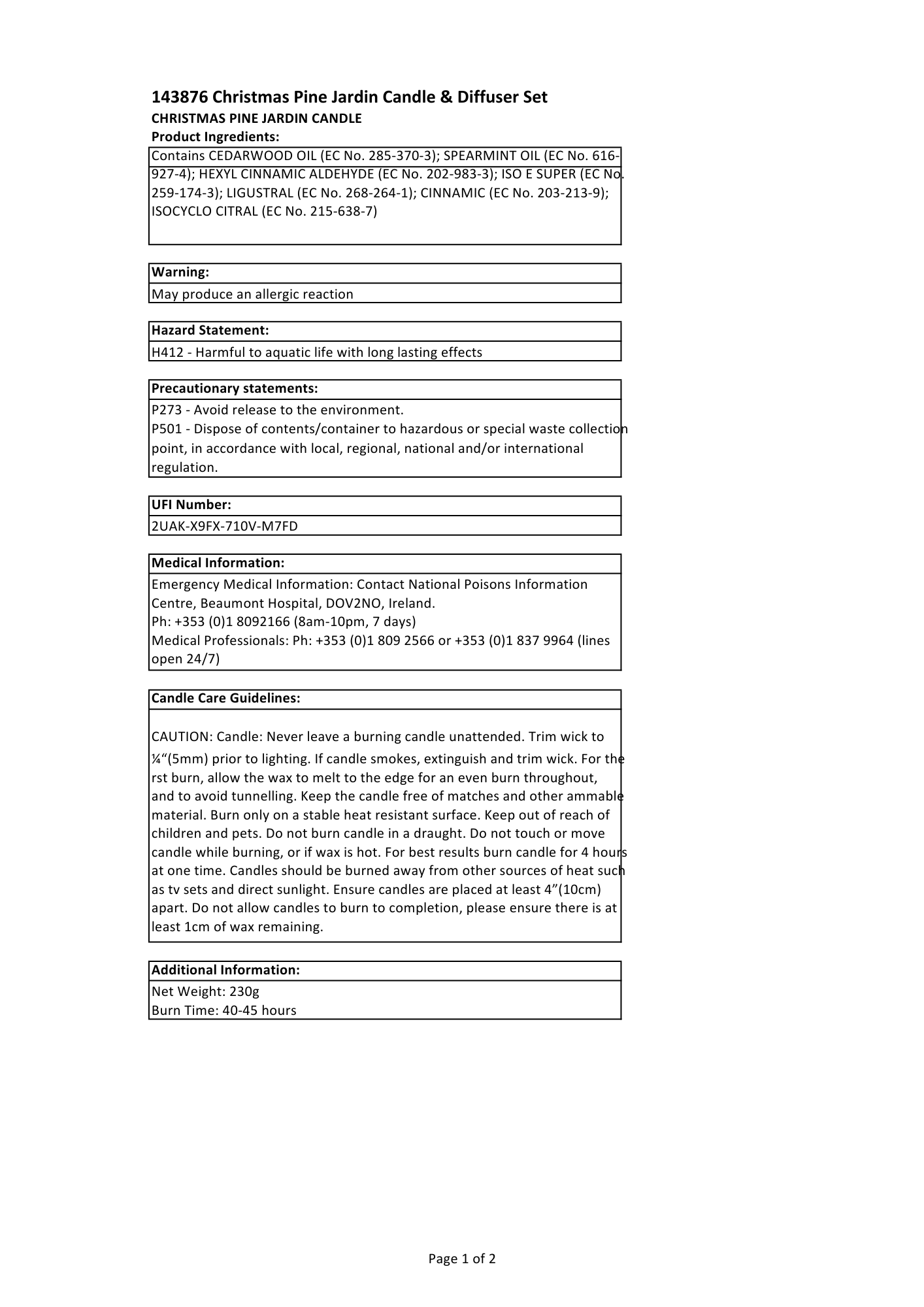 Christmas Pine Jardin Collection Christmas Candle & Diffuser Set 143876 TIPPERARY CRYSTAL Mulligans of Ballaghaderreen
