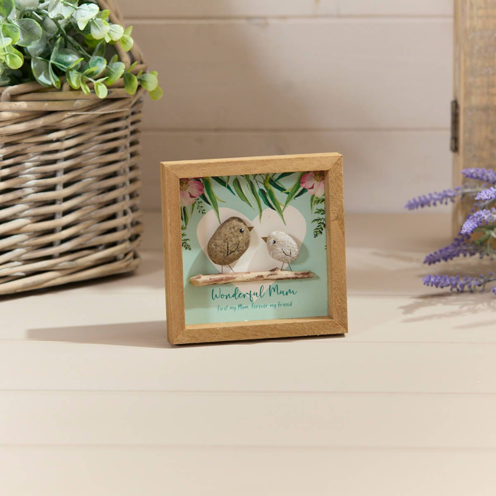 FLORAL FEATHERED WOOD FRAMED MUM PLAQUE WITH RESIN BIRDS 8FE121 Richard Langs Mulligans of Ballaghaderreen