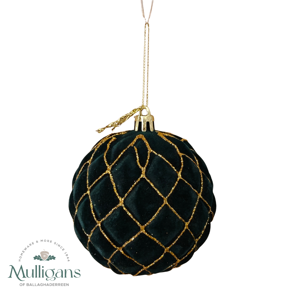 8cm Velvet and Glitter Criss Cross Ball - Emerald and Gold