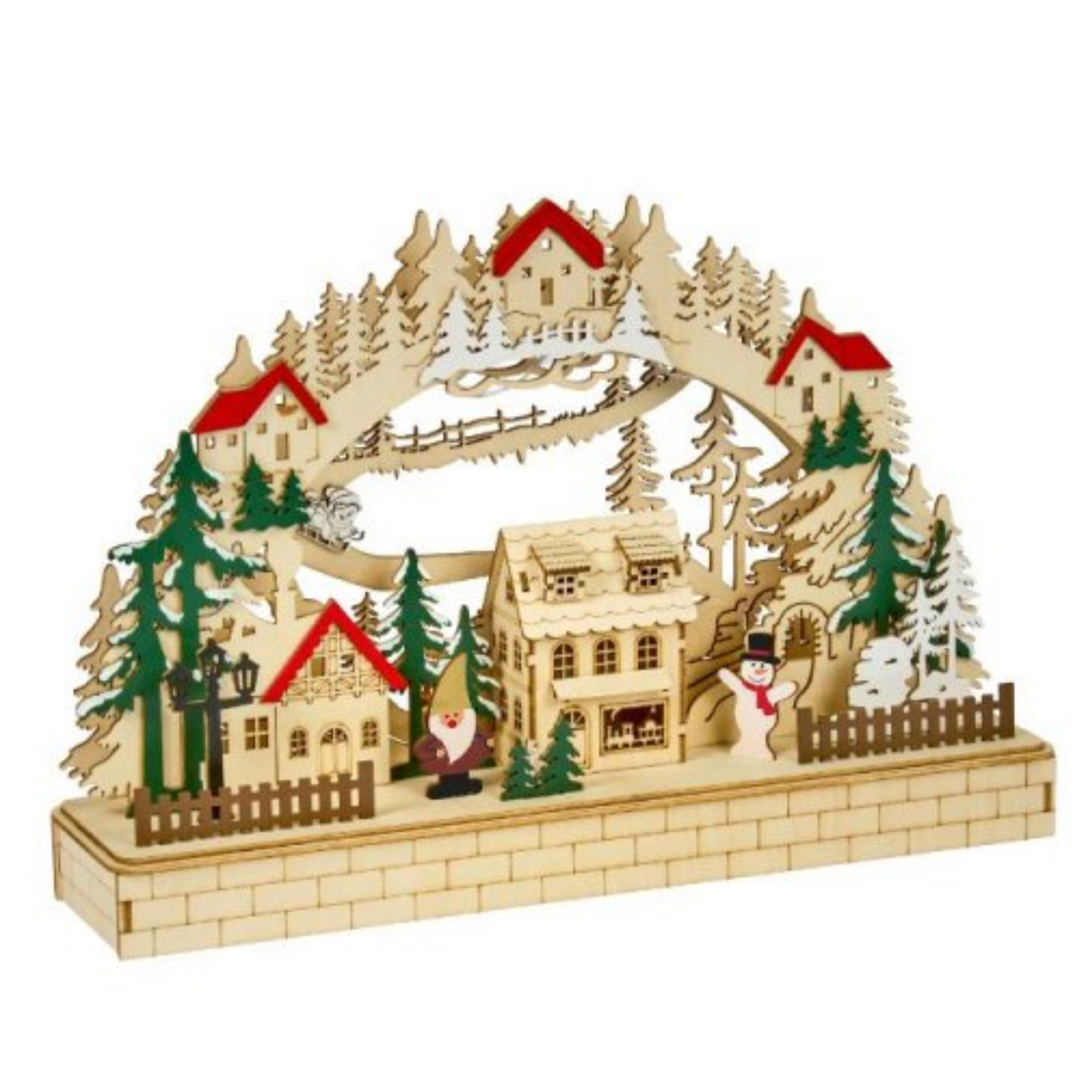 Bring the magic of winter indoors with the InLit Alpine Christmas display. Measuring 27 x 41cm, this charming wooden scene glows softly with warm lights, creating a cosy, festive atmosphere that delights both young and old. Perfect for adding a playful touch of holiday cheer to any room.