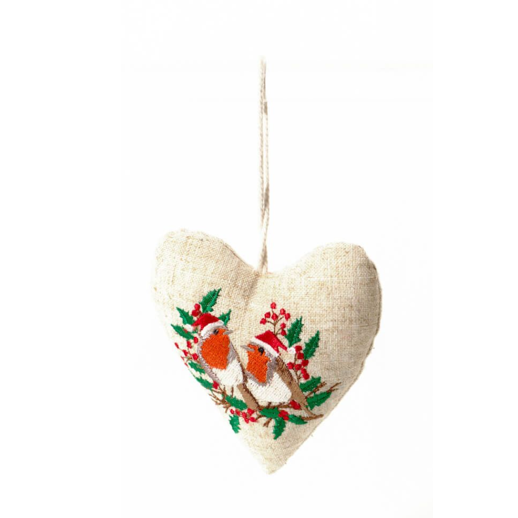 Robin Embroidered Hanging Cotton and Linen Hearts 4XA664 Richard Langs Mulligans of Ballaghaderreen