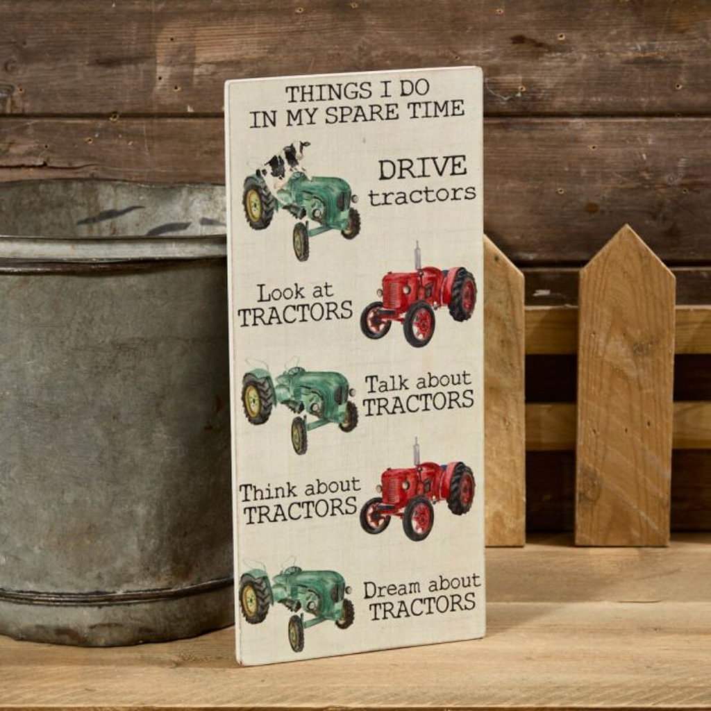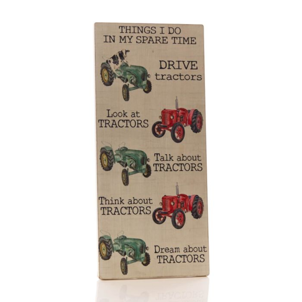 Add a touch of refined rustic charm to your home or farm with this elegant long rectangular plaque crafted from white wood. Measuring 18x0.9x40 cm, it features thoughtfully designed humorous farm-themed text accompanied by alternating green and red tractor illustrations. The tasteful black lettering harmonizes with the vivid tractors to capture the spirit of leisurely tractor activities, making it an ideal accent for those who appreciate countryside wit with sophistication.