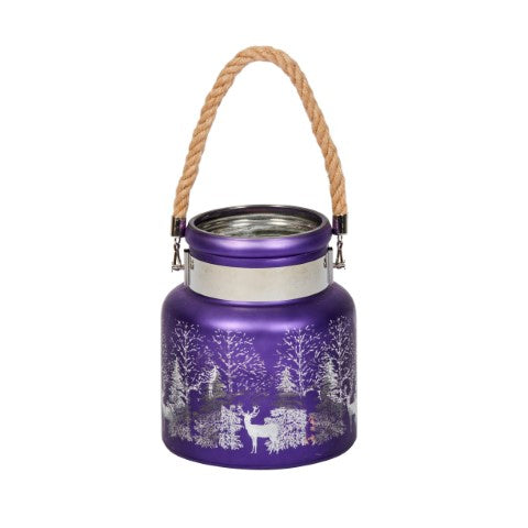 Add a touch of whimsy to your home with the Wonderland Lantern in Purple. This lantern features a snowy wooded scene that will transport you to a magical world. Perfect for creating a cosy and enchanting atmosphere, it's a must-have for any home decor.