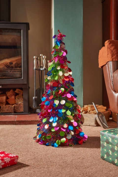Spruce up your holiday decor with the X-Bling! Cone - 60cm. This unique cone-shaped Christmas tree features options for a tinsel or confetti design, adding a touch of fun and sparkle to any space. Don't settle for a boring tree, go for the X-Bling!
